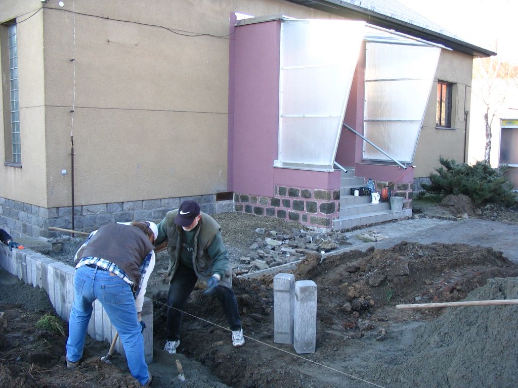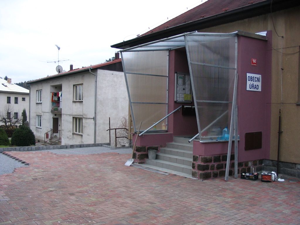 - vchod do obecního úřadu byl zastřešen, položením zámkové dlažby došlo nejen k vyšší estetické kvalitě parkingu před úřadem, ale také k mírnému navýšení parkovací kapacity. Osazeno nové zábradlí a trocha okrasné zeleně.