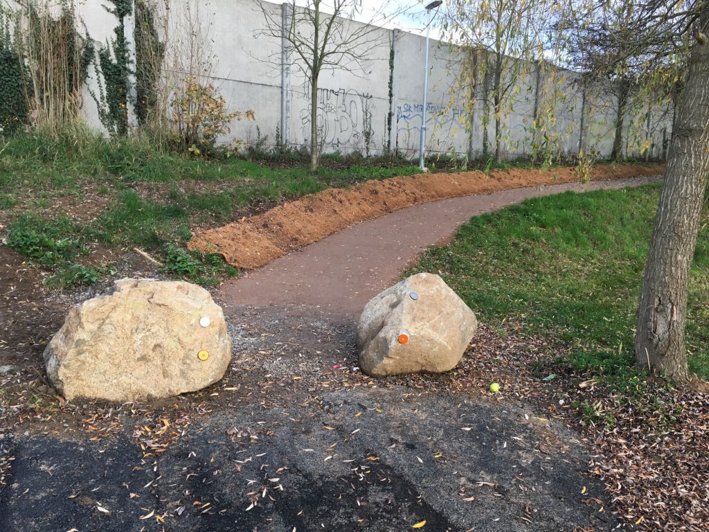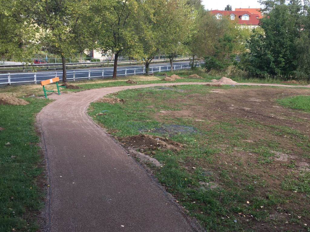- mlatové cestičky se zahradními obrubami, lávka přes Kunický potok