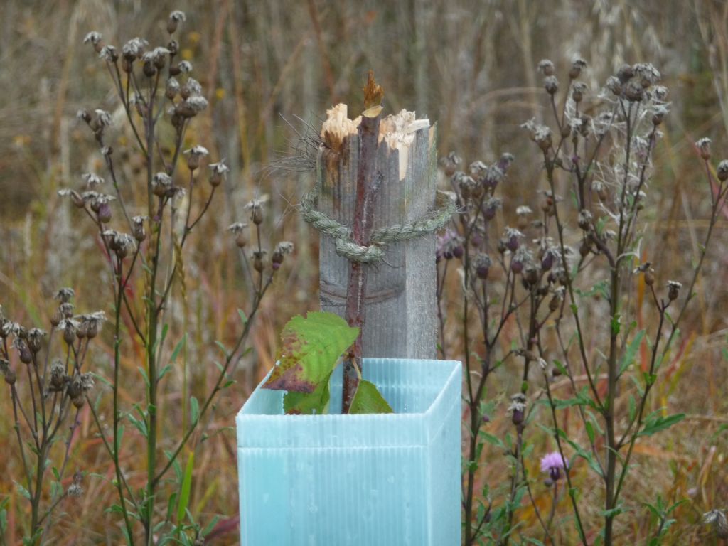 ...než se stačily mladé stromky stabilně rozrůst, asi třetinu i s plastovými chráničkami proti zvěři primitivní vandalové vytrhali, polámali a rozbili. Nyní místo třešní bylo vysazeno 30 ks jeřabin...