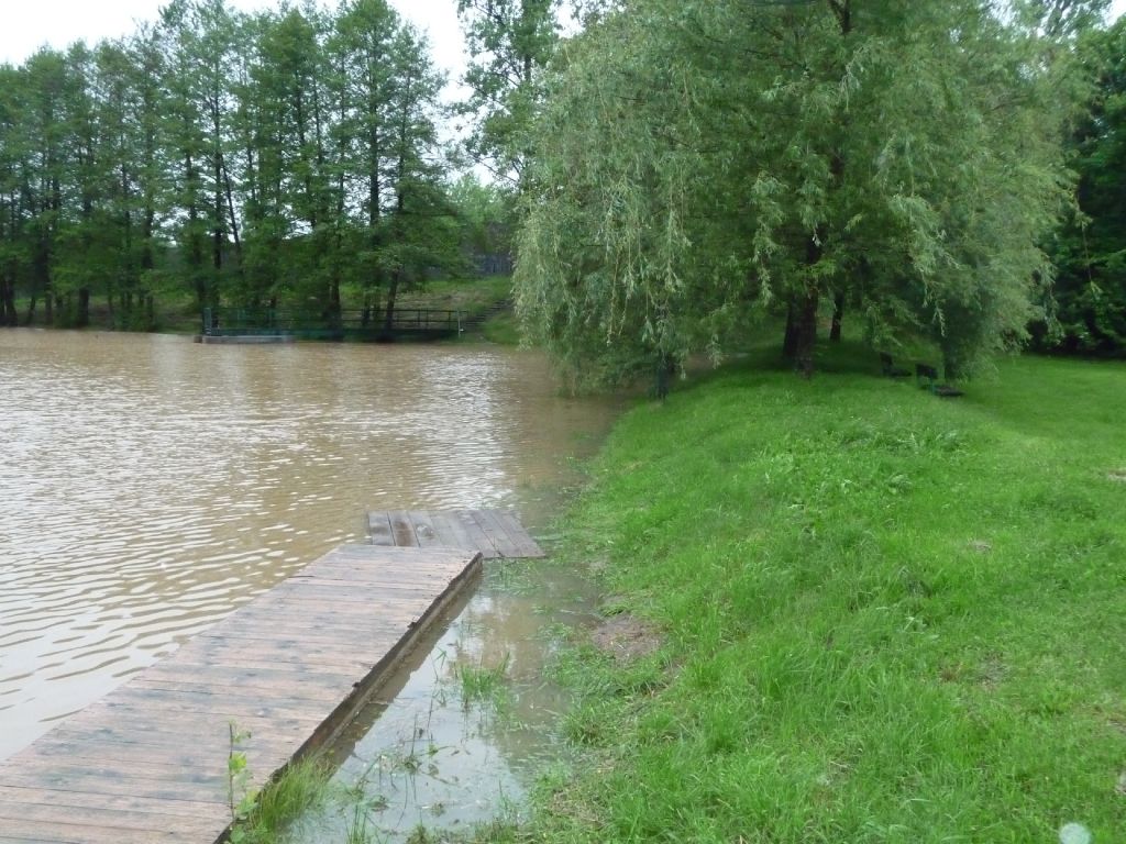 Štičí rybník se maximálně naplnil až po okraj stavidla, ale odtok dobře funguje a před vylitím brání i před lety navýšená hráz se smutečními vrbami..